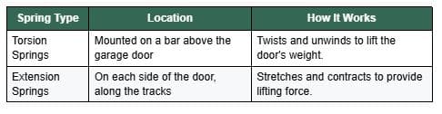 Two main spring systems are used in residential applications. Each type operates differently and is installed in a specific location. Knowing how these systems function helps identify early warning signs and supports safer long-term operation.